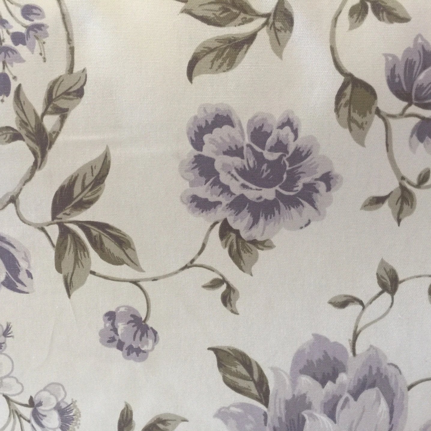 Loire Mauve by Fryetts is an attractive 100% cotton floral fabric. Loire is ideal for Curtains, Blinds and Accessories and is also suitable for Occasional Domestic Upholstery. Loire may be washed at 40 degrees centigrade. Cool Iron. Do Not Tumble Dry, Do not add Bleach. May be Dry Cleaned.